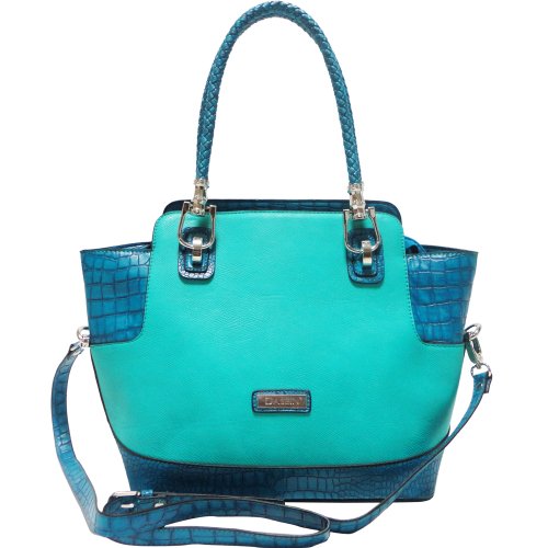 Dasein Designer Crocodile Animal Print Trim Tote Handbag w/ Braided Shoulder Straps Blue Dasein Designer Crocodile Animal Print Trim Tote Handbag w/ Braided Shoulder Straps Blue
