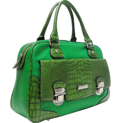 Dasein Designer Crocodile Animal Print Texture Satchel Handbag w/ Front Buckled Pocket Green Dasein Designer Crocodile Animal Print Texture Satchel Handbag w/ Front Buckled Pocket Green