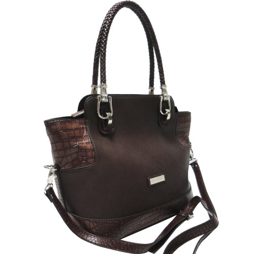 Dasein Designer Crocodile Animal Print Trim Tote Handbag w/ Braided Shoulder Straps Coffee Dasein Designer Crocodile Animal Print Trim Tote Handbag w/ Braided Shoulder Straps Coffee
