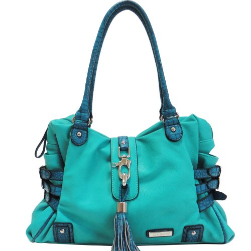 Dasein Designer Crocodile Animal Print Trim Shoulder Handbag w/ Belted and Tassel Accents Blue Dasein Designer Crocodile Animal Print Trim Shoulder Handbag w/ Belted and Tassel Accents Blue