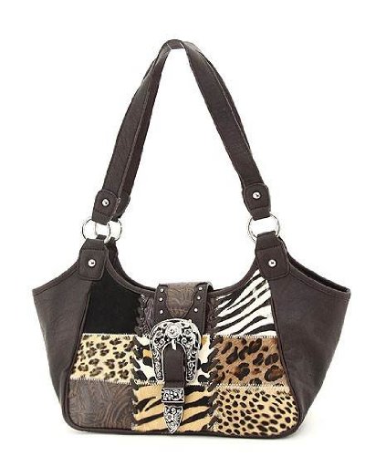 Western Bags Vintage Buckle Patchwork Animal Print Fashion.