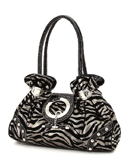 Pewter Zebra Faux Leather & Velvet Toggle Large Hobo Purse